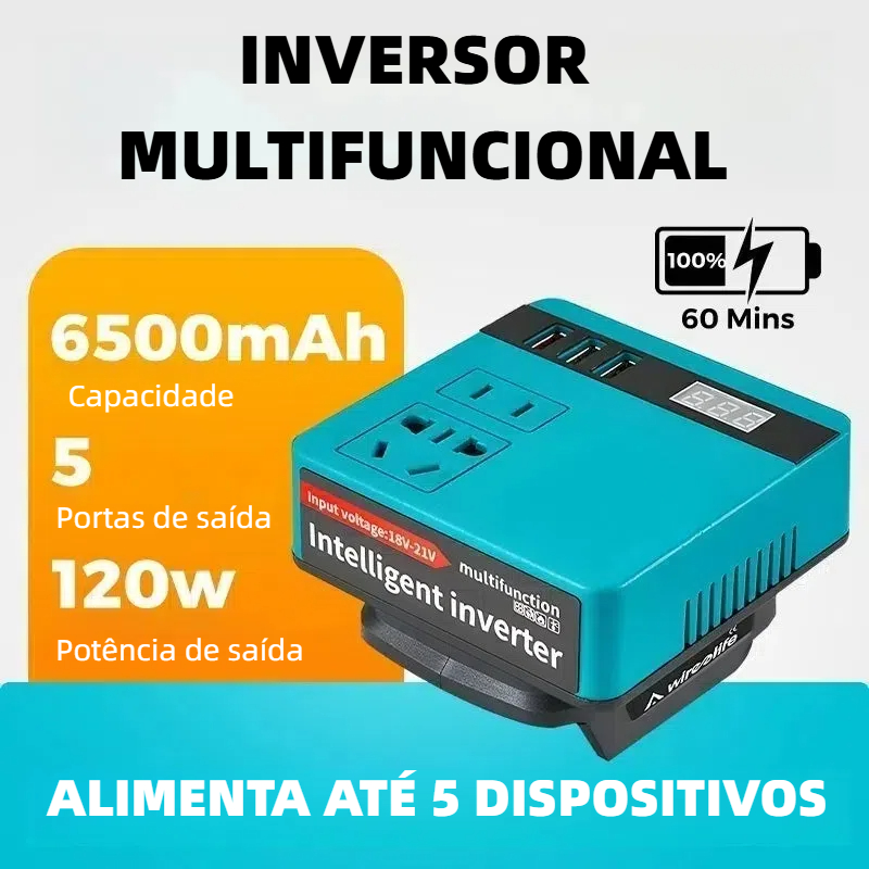 Kit portátil de inversor multifuncional (inversor, bateria, carregador)