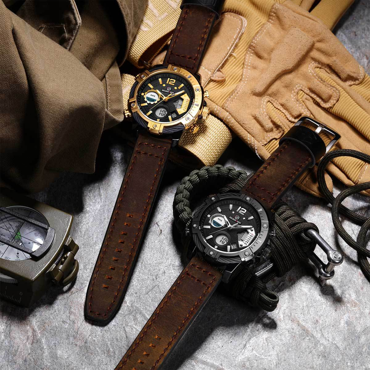 Workwear style personalized multi-functional dual-display 3ATM waterproof men's quartz sports watch