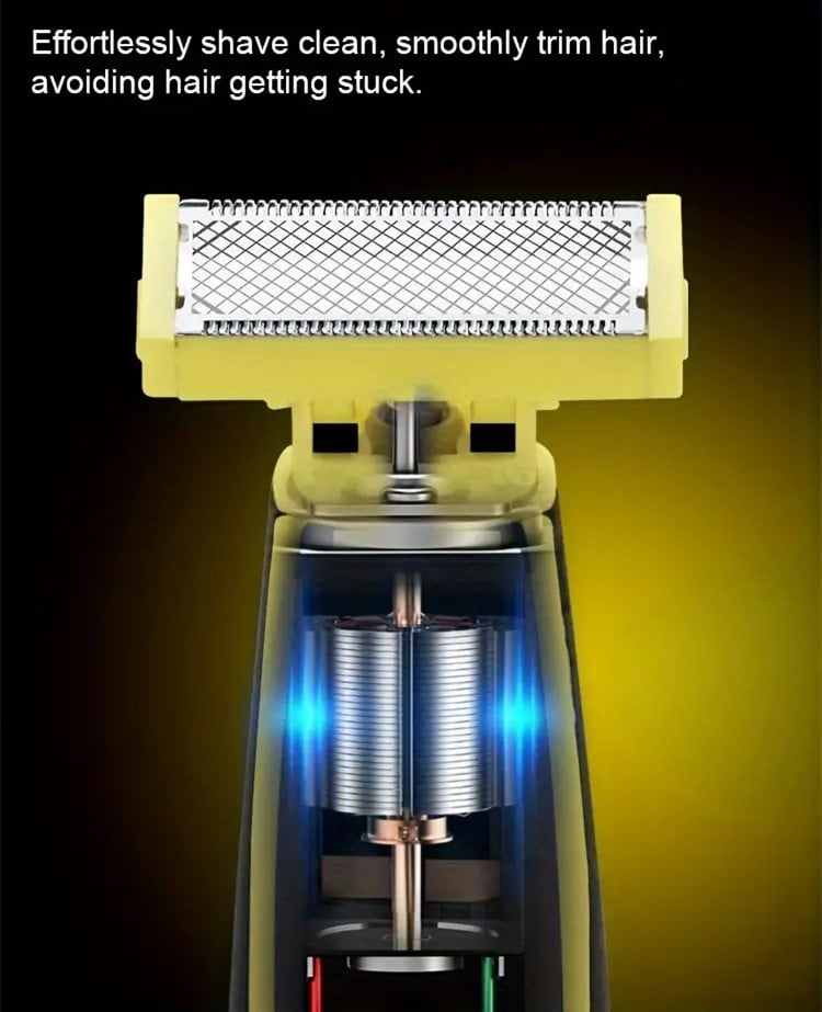 A cabeça de corte em forma de arco foi concebida para se adaptar melhor à pele do corpo, permitindo um aparar confortável sem magoar a pele. Ao mesmo tempo, a cabeça de corte flutuante também pode aparar facilmente áreas difíceis de barbear, como o queixo, patilhas e axilas, tornando o corte mais abrangente.
