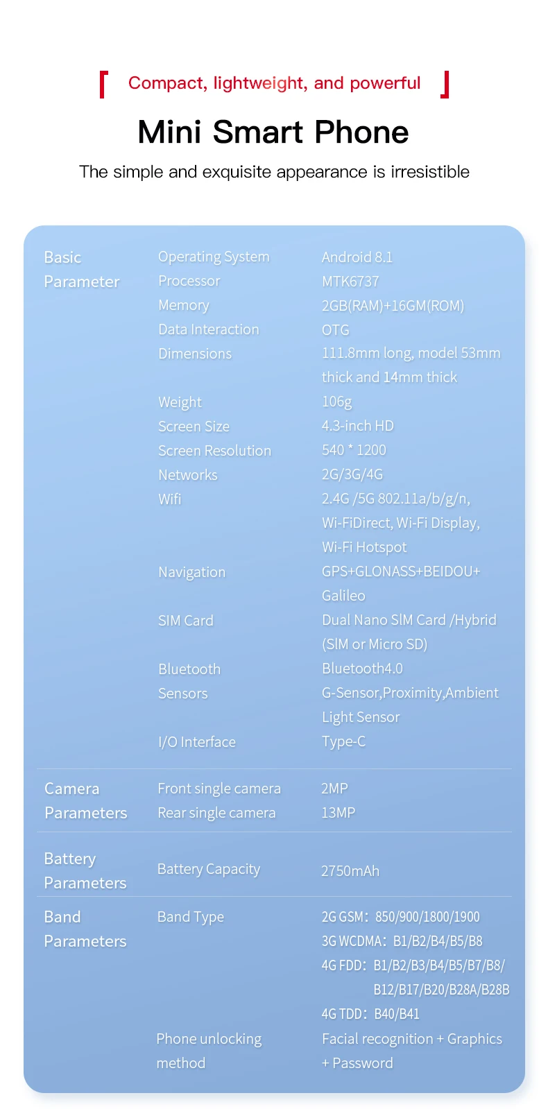 ⋆ Phone Size : 111.8*53*14mm