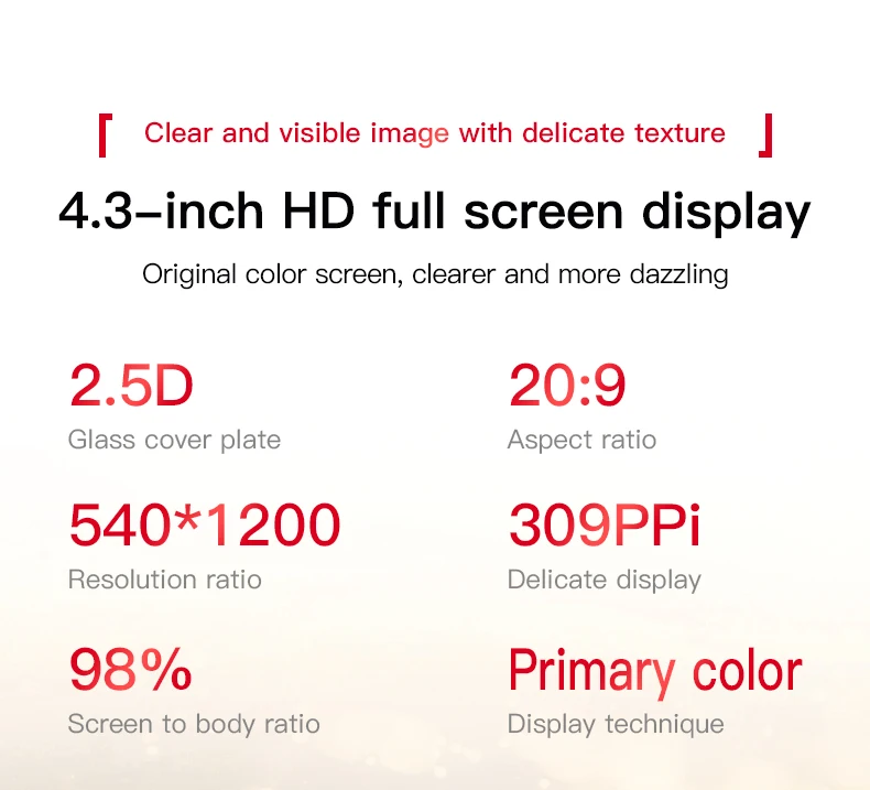 ⋆ Screen Size : 4.3 inch HD 540*1200 Screen