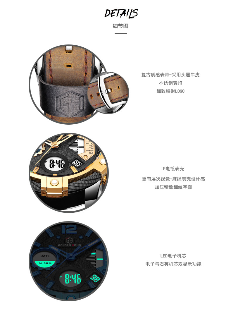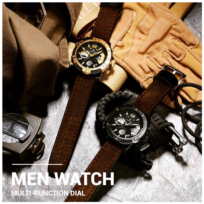 Workwear style personalized multi-functional dual-display 3ATM waterproof men's quartz sports watch