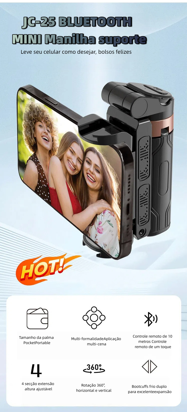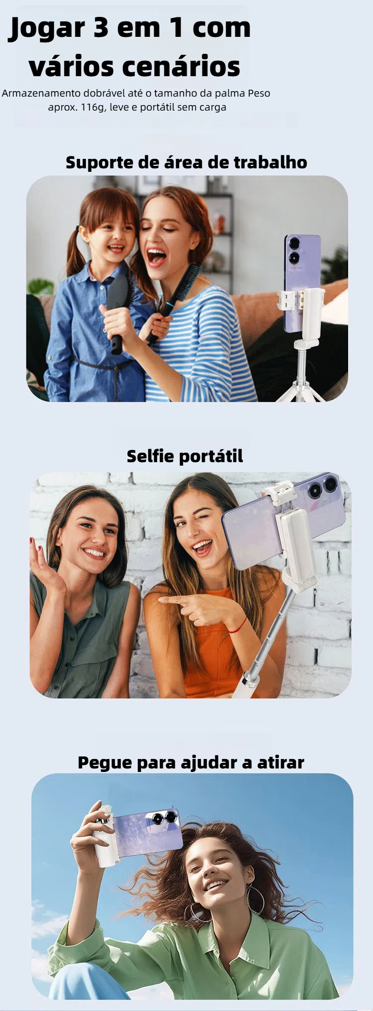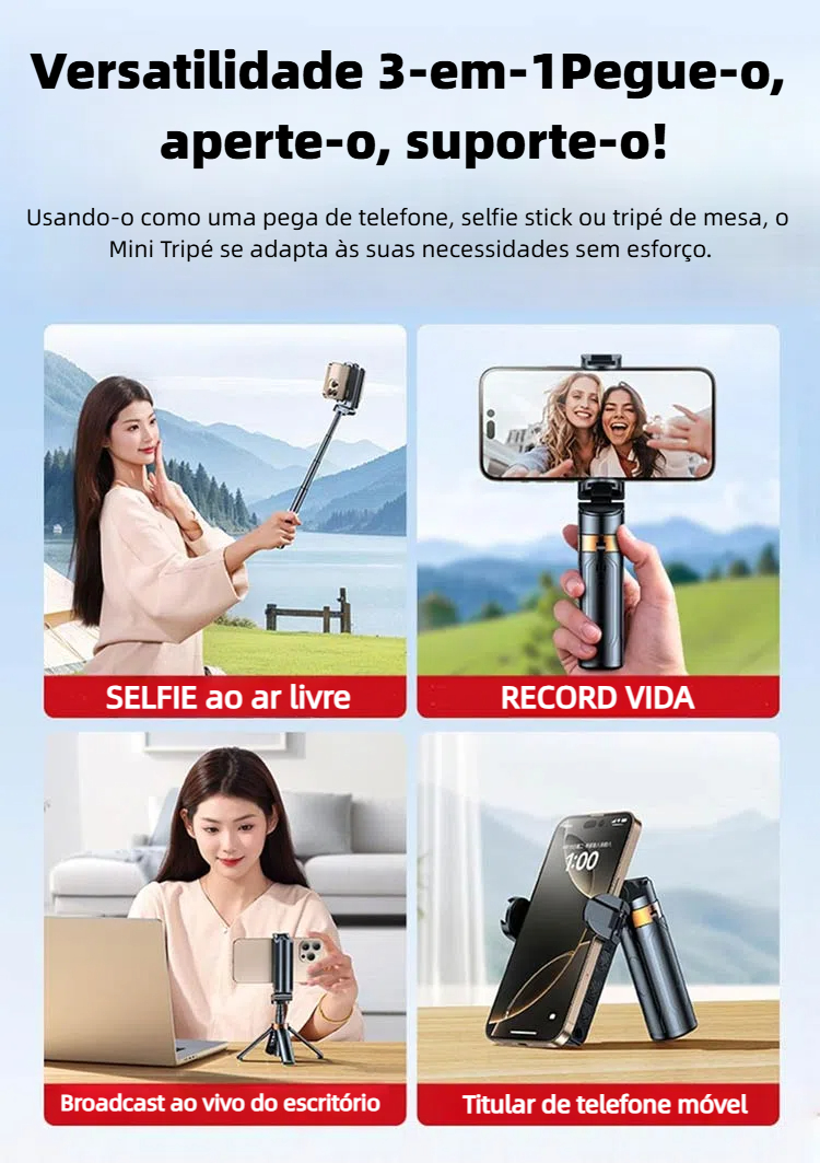 Mini selfie stick multifuncional do telefone móvel - Crie livremente, registre a bela vida - torne-se facilmente uma celebridade da Internet