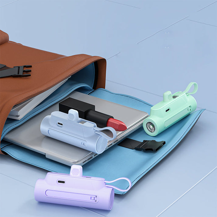 INTEGRATED CONVENIENT DESIGN: Designed with a built-in charging cable. Lightning+ Type-c two output design, can charge two devices at the same time, compatible with different models, easy to charge anytime.